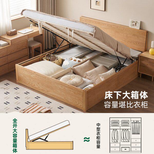 原始原素实木床现代简约橡木全开箱体床小户型双人床储物床P4014