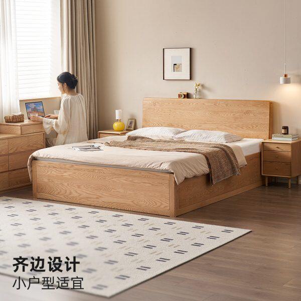 现代简约实木床1.8米主卧双人床1.5M单人经济型高箱储物大床