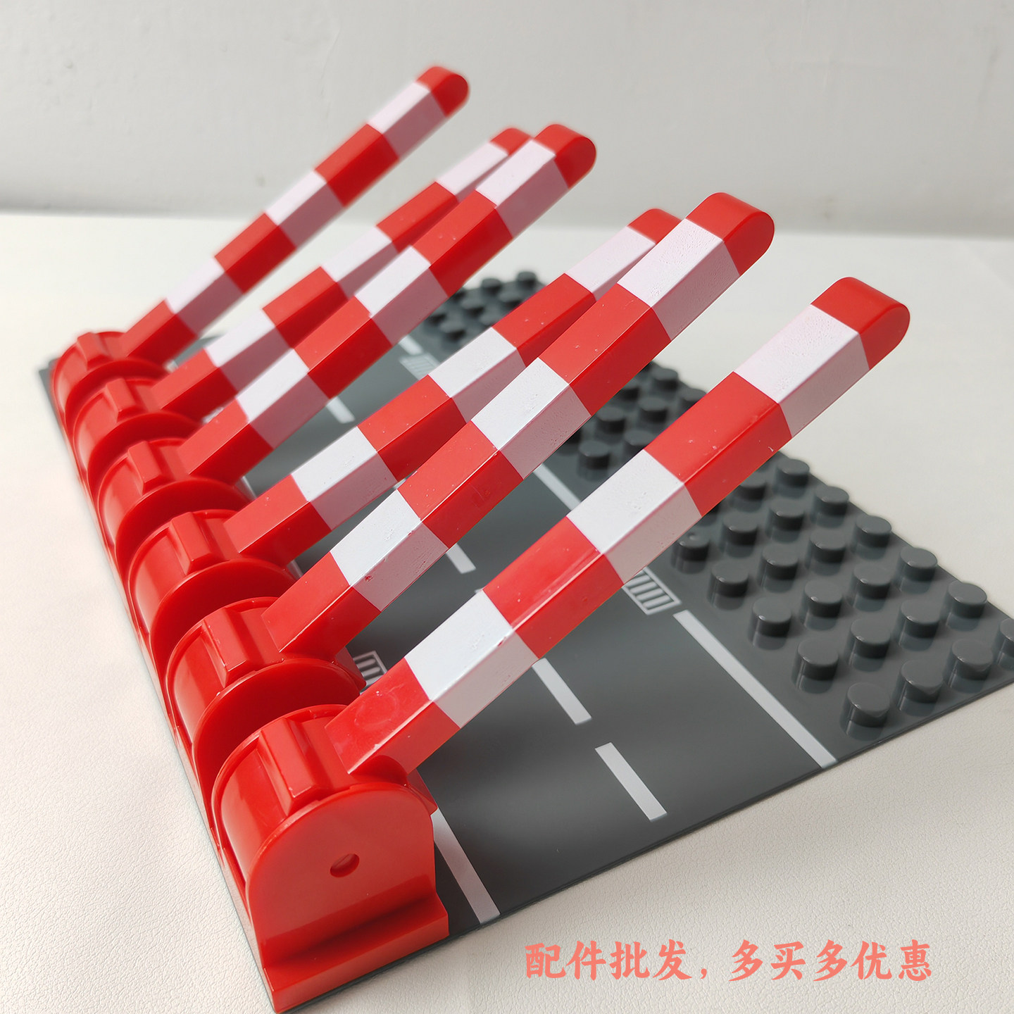 玩具儿童科教益智场景拼插 红白拦车杆积木公路交通配件大颗粒拼装由