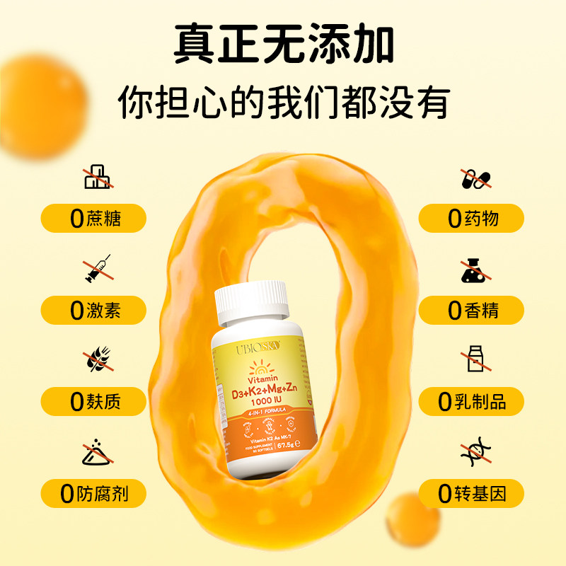 为您提供商品3瓶 UBIO优碧欧维生素d3k2镁锌4合1000iu儿童阳光补钙维生素dk镁的详细介绍,