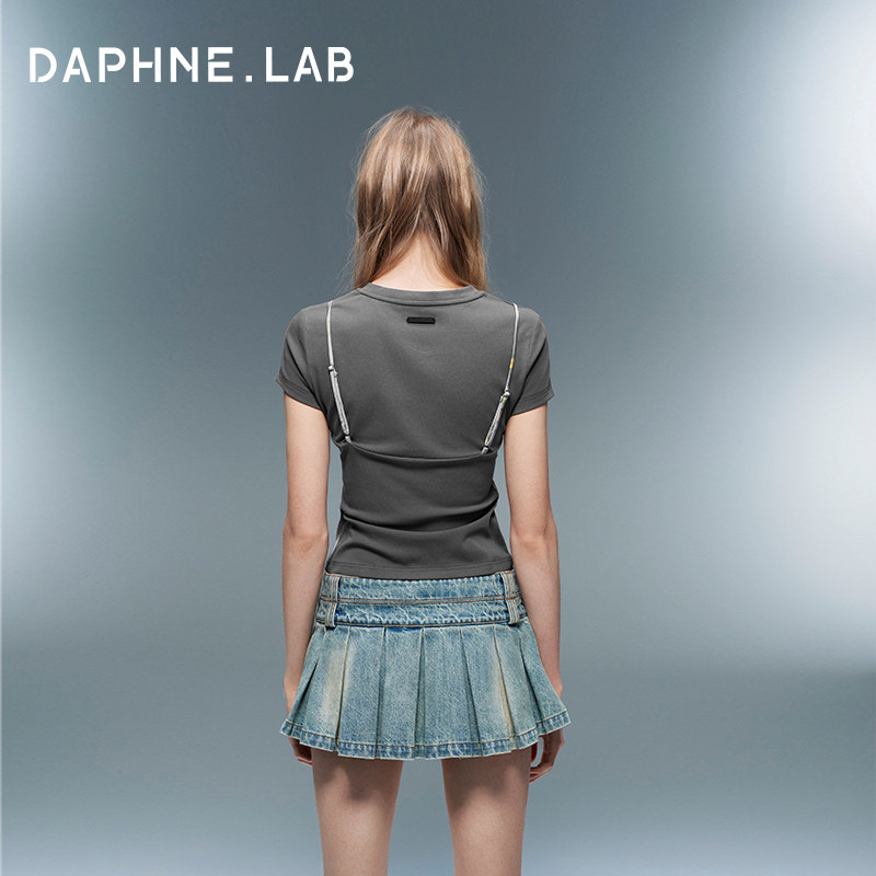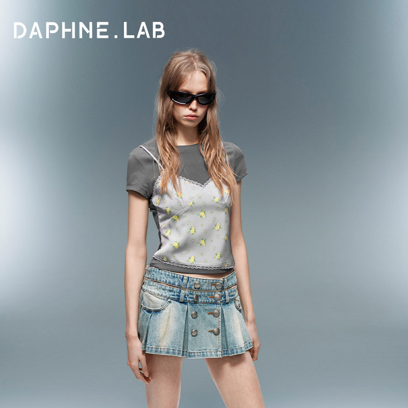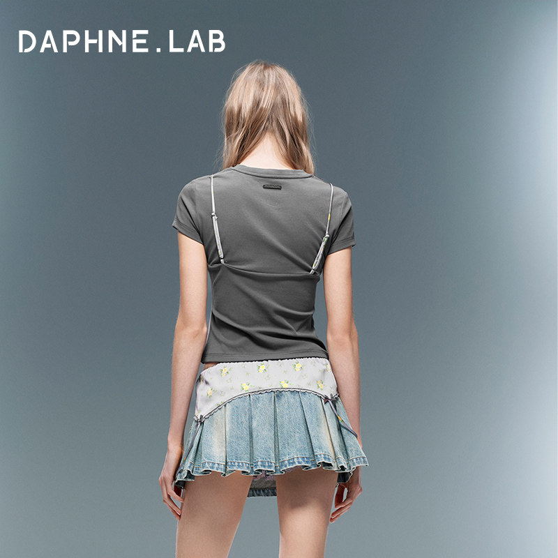 t恤短裤 DAPHNELAB 26SS 假两件短袖 错序叠穿千禧感春日拼接 套装