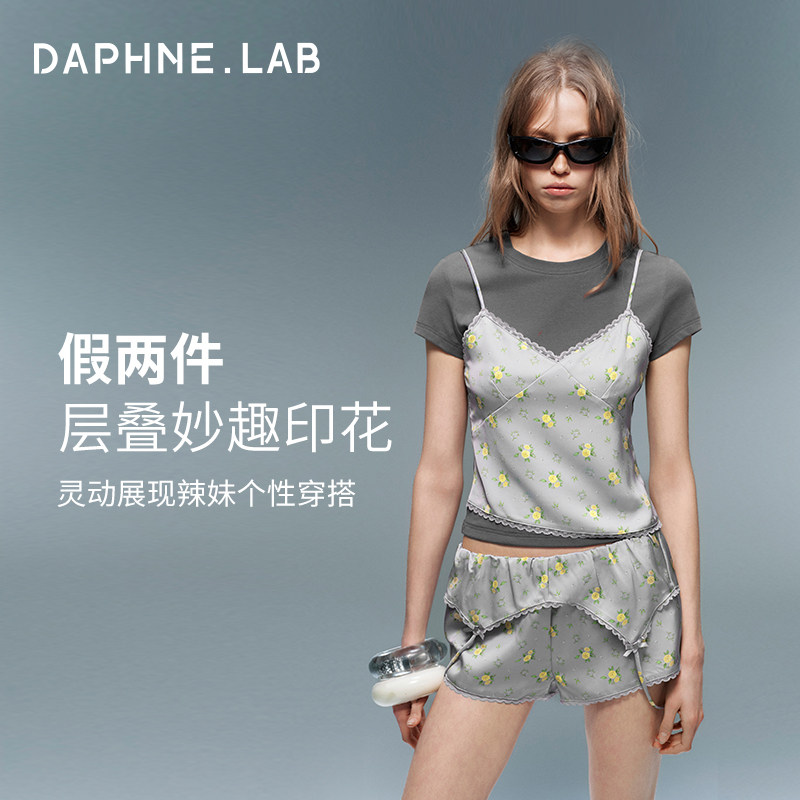 t恤短裤 DAPHNELAB 26SS 假两件短袖 错序叠穿千禧感春日拼接 套装由