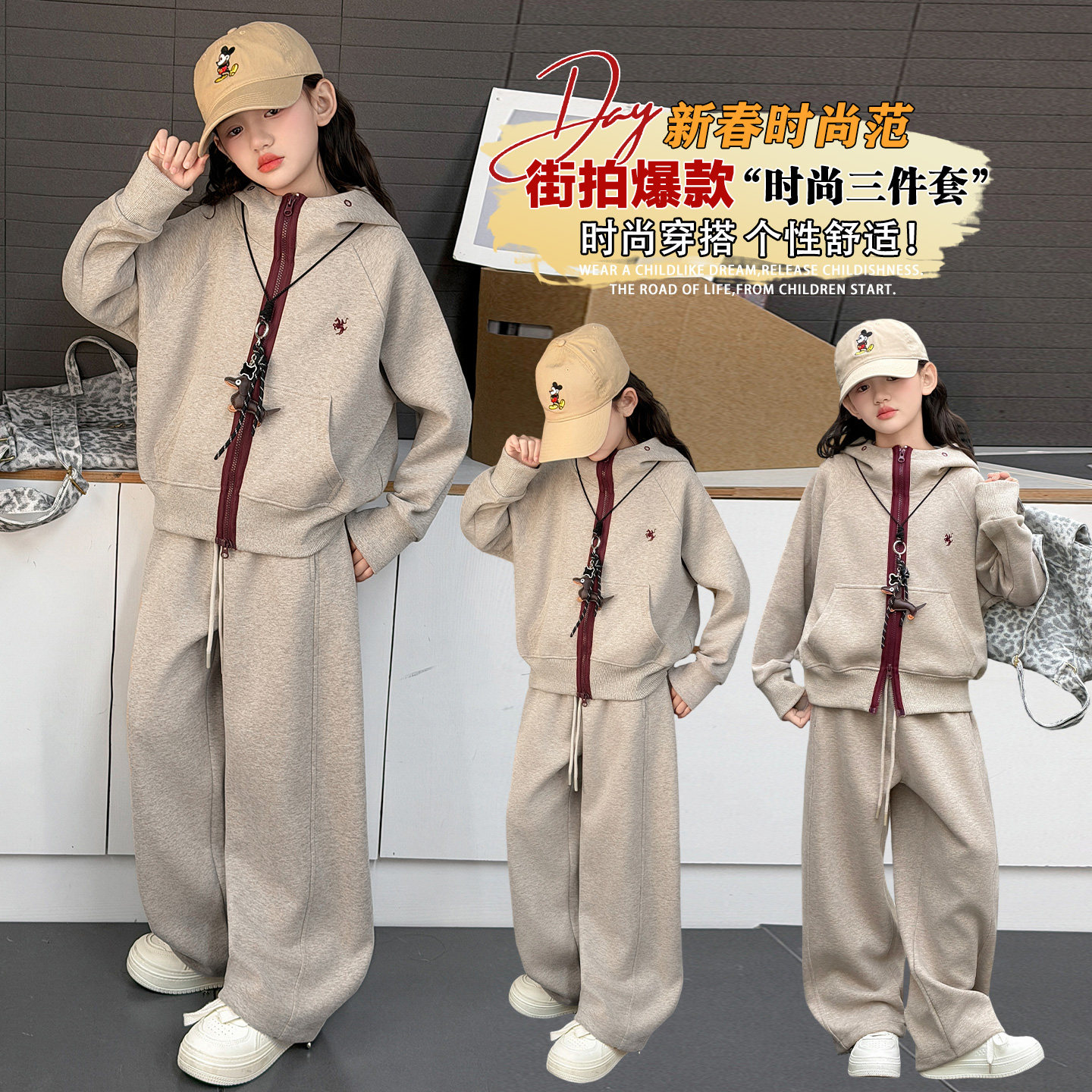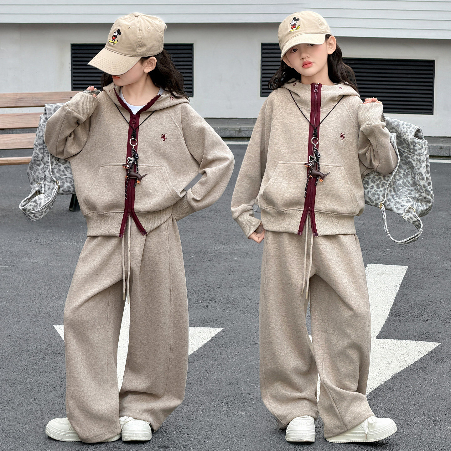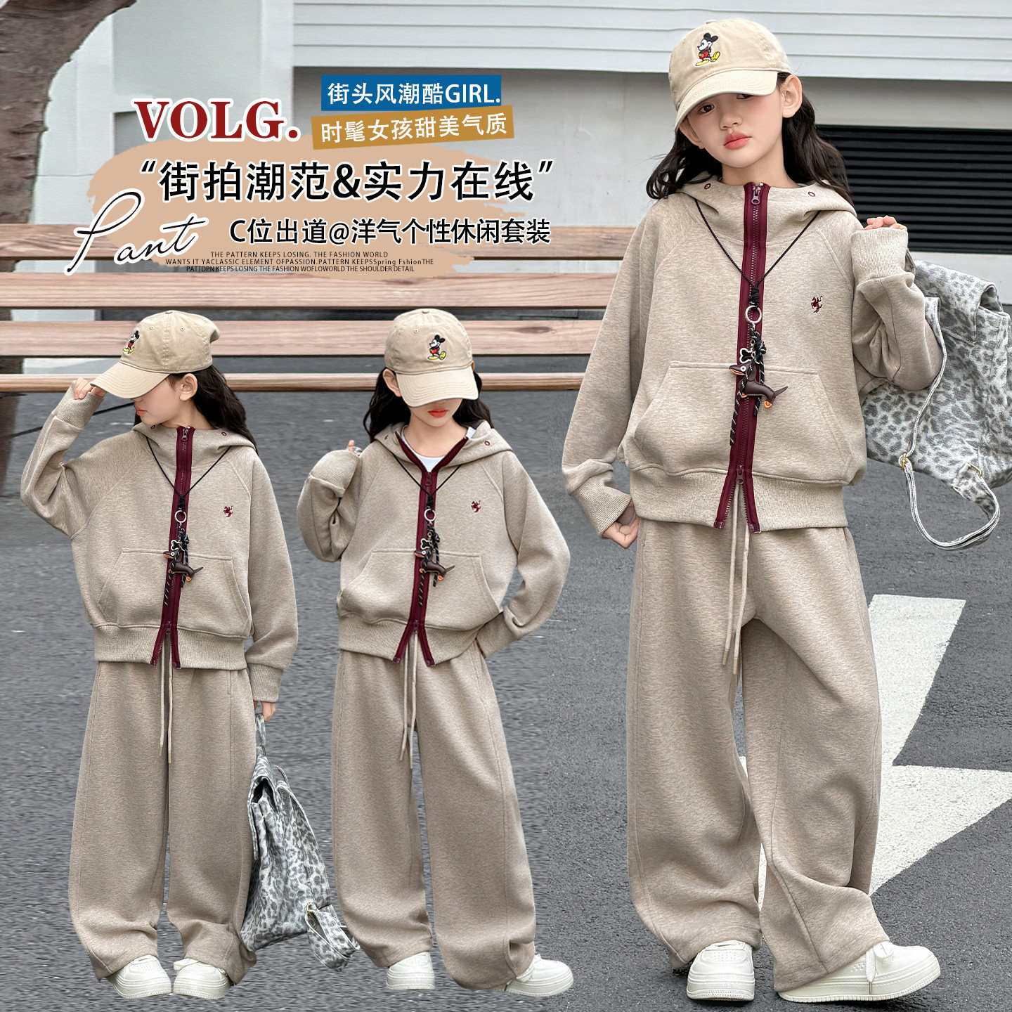 阔腿裤 女童套装 两件套 开衫 中大童女孩春装 春秋季 卫衣洋气2026新款