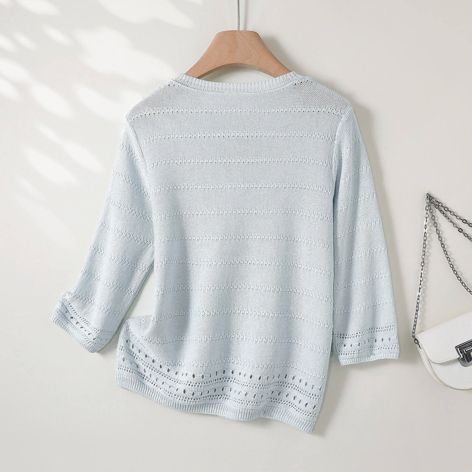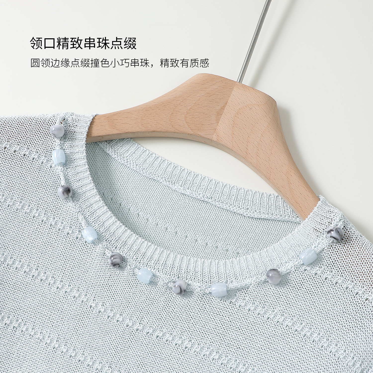 新款 2026春季 亦白 上衣女 简约七分袖 套头串珠镂空针织衫 时尚 YBAI