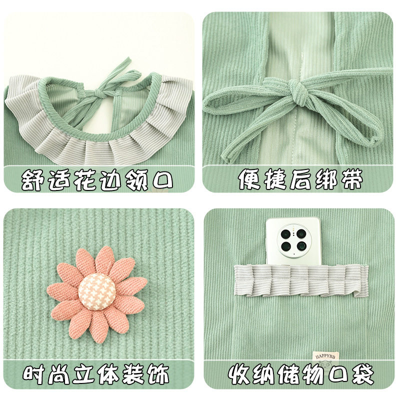 为您提供商品围裙防污耐脏罩衣女入照衣 淡绿绿可爱花边领网红厨房家用条绒长袖的详细介绍,