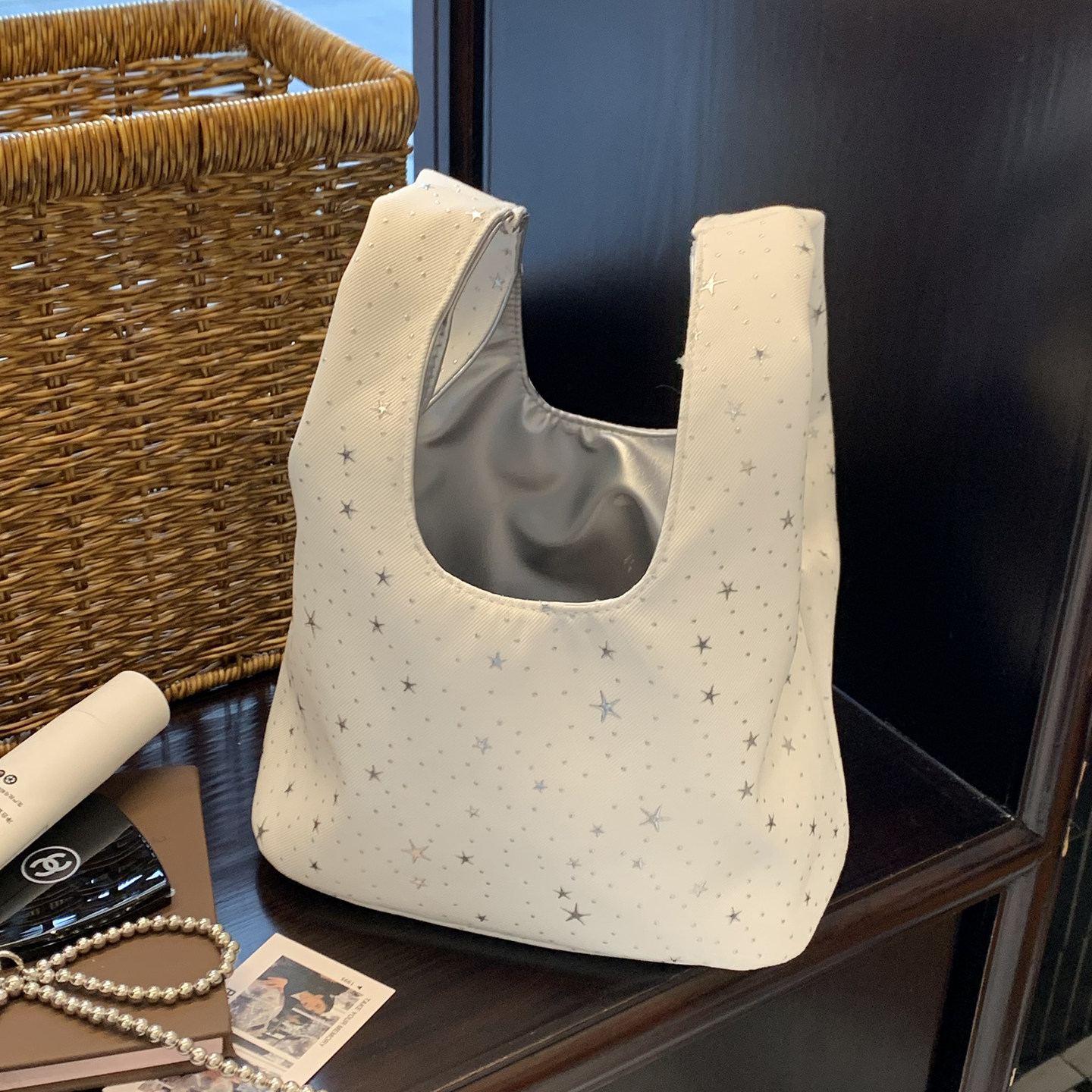 外出通勤上班小拎包百搭托特包水桶包 日韩风星星波点手提包包女款
