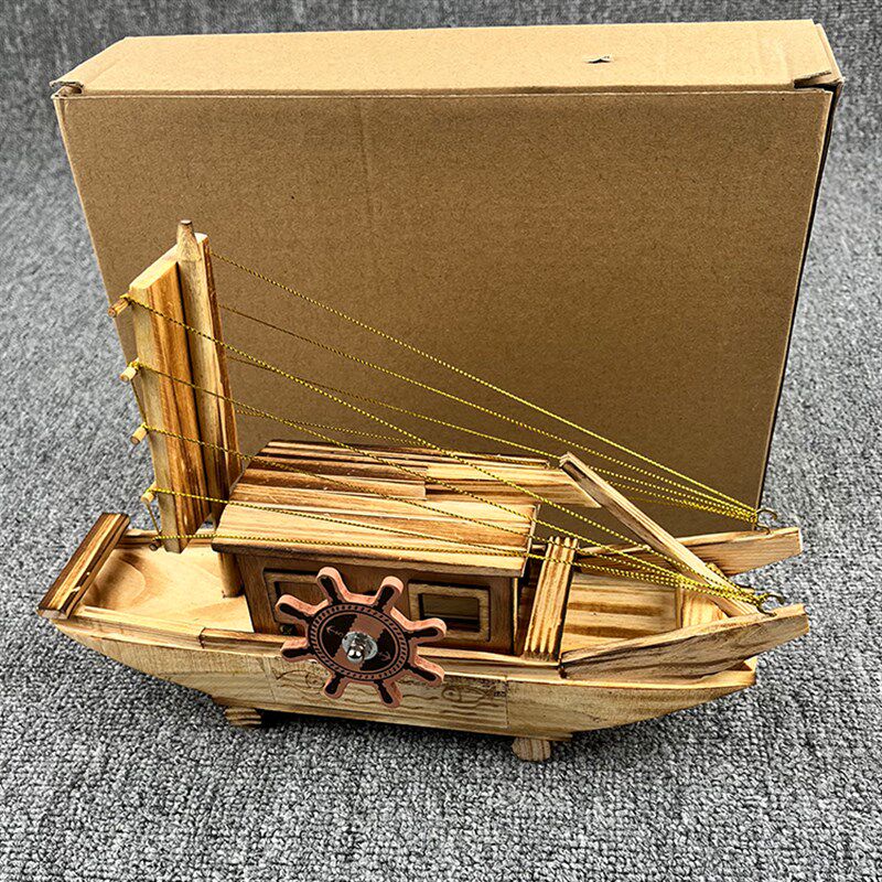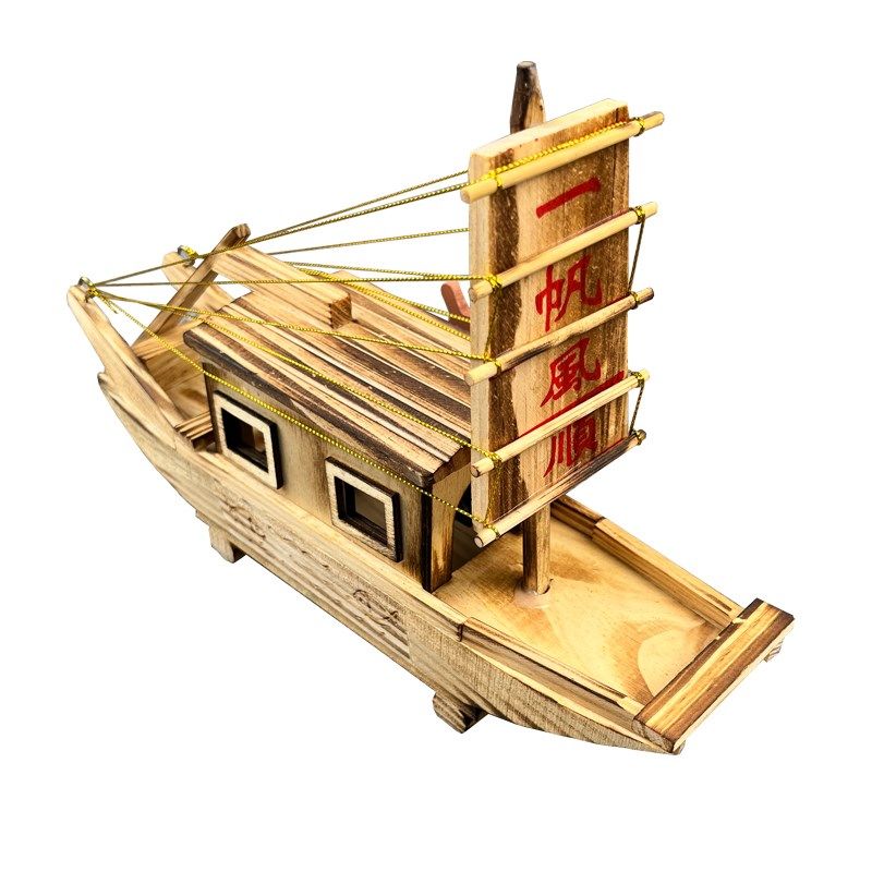 饰摆件木船工艺小船 木制手工音乐小船一帆风顺帆船放在办公桌上装由