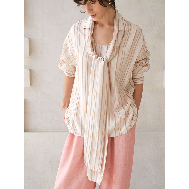 设计感绑带条纹衬衫 sense 26SS春夏新品 上衣 女休闲套头长袖由