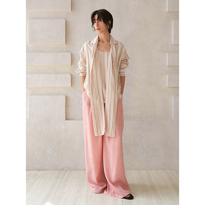 设计感绑带条纹衬衫 sense 26SS春夏新品 上衣 女休闲套头长袖