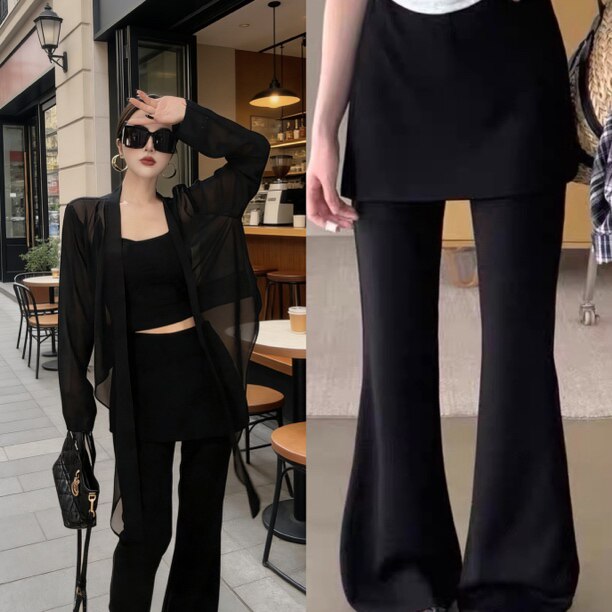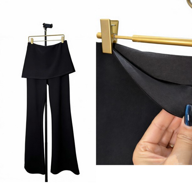 显瘦遮胯休闲裤 薄2663 女高腰修身 2026百搭侧开叉假两件屁帘微喇裤