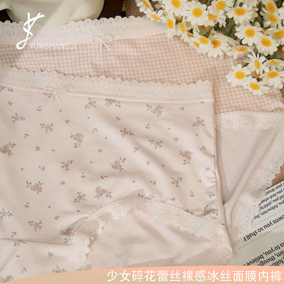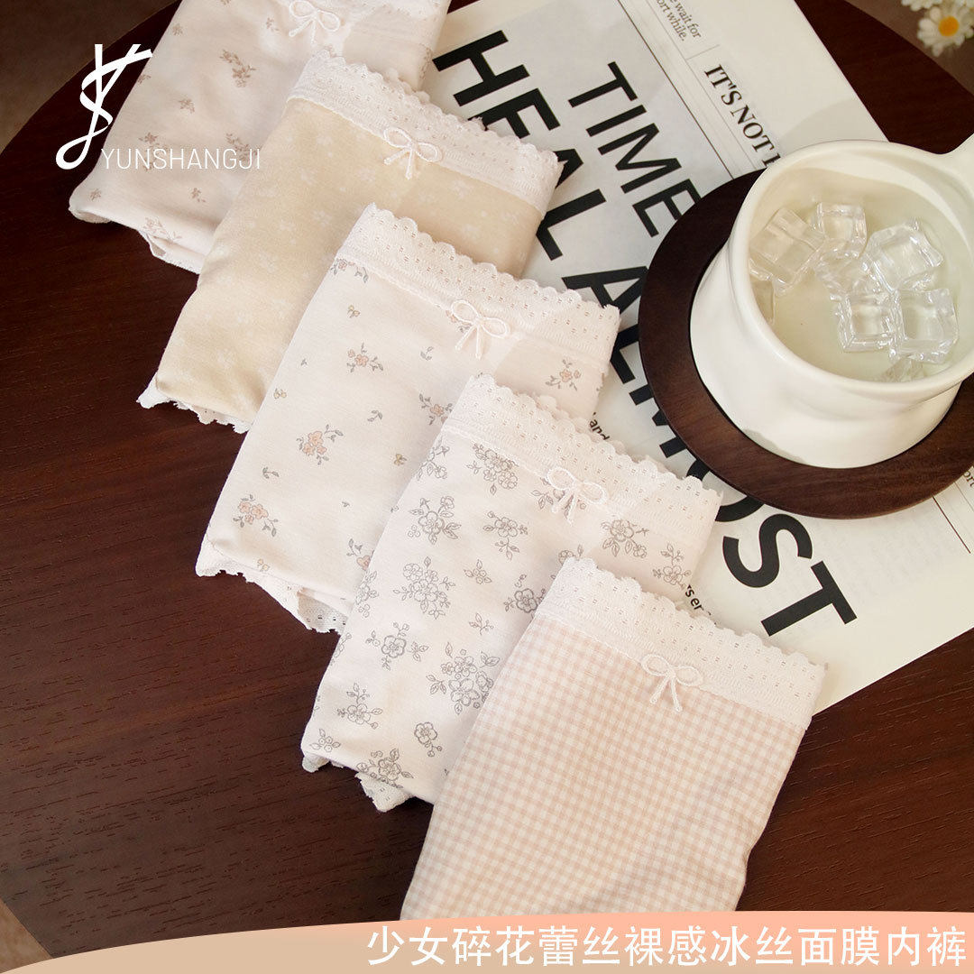 YSL1661春夏薄款 中腰法式 少女碎花抗菌三角短裤 凉感冰丝面膜内裤
