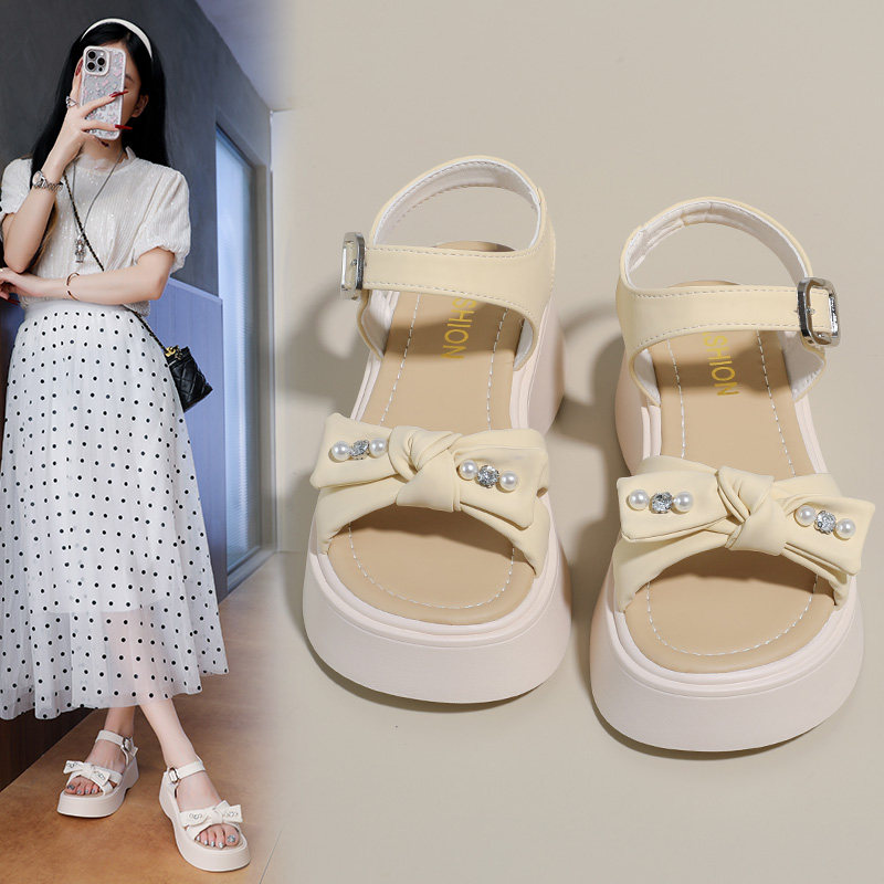 时装 仙女风蝴蝶结一字带凉鞋 女2026新款 夏厚底增高34码 配裙子 凉鞋由