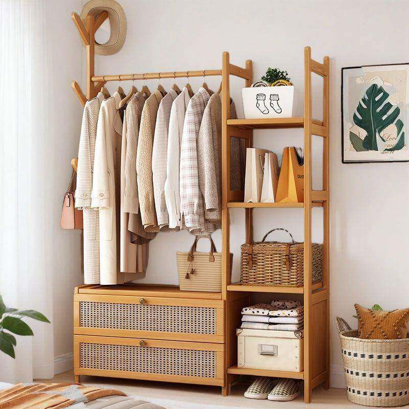 挂衣架带储物柜家用简房SUH间挂易衣架服落地卧室衣帽多能置物2功