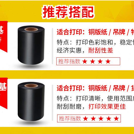 打印机亚银不干胶标签纸全树脂水洗唛增强腊基色带 100热转印条码 混合基蜡基碳带卷110x300m