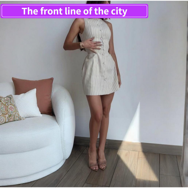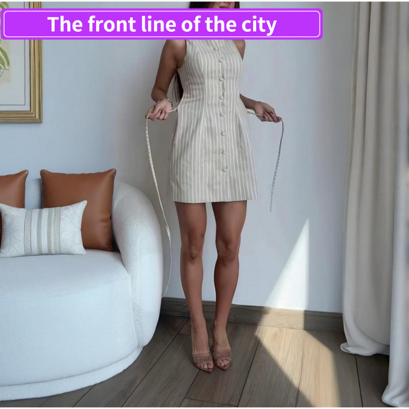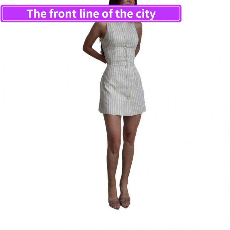 for Sexy Women现货纯色纽扣系带收腰 Dress Fashion Split Strap由