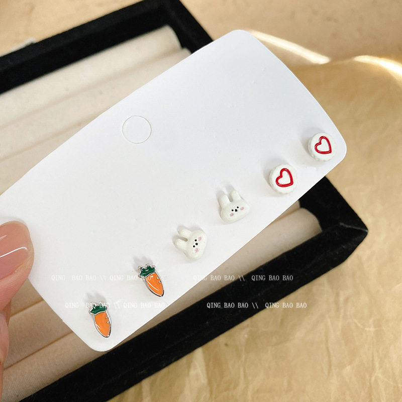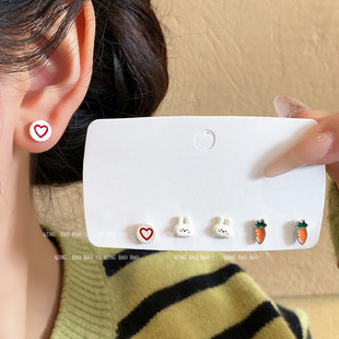 小兔子耳钉套装 气质百搭高级感耳饰 设计感爱心小巧简约耳环女时尚