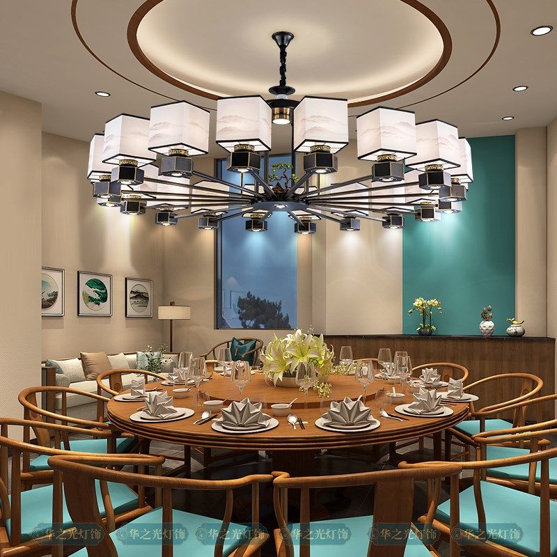 餐厅包房吊灯红色洒楼宴会大厅酒店包间包厢火锅店吊灯带射灯 中式由