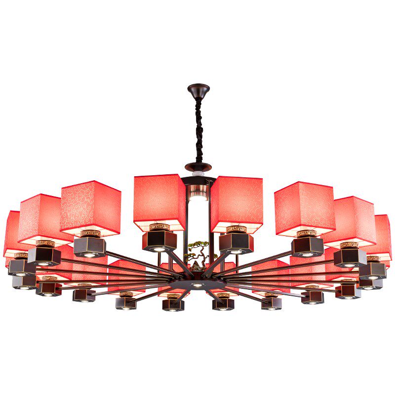 为您提供商品餐厅包房吊灯红色洒楼宴会大厅酒店包间包厢火锅店吊灯带射灯 中式的详细介绍,