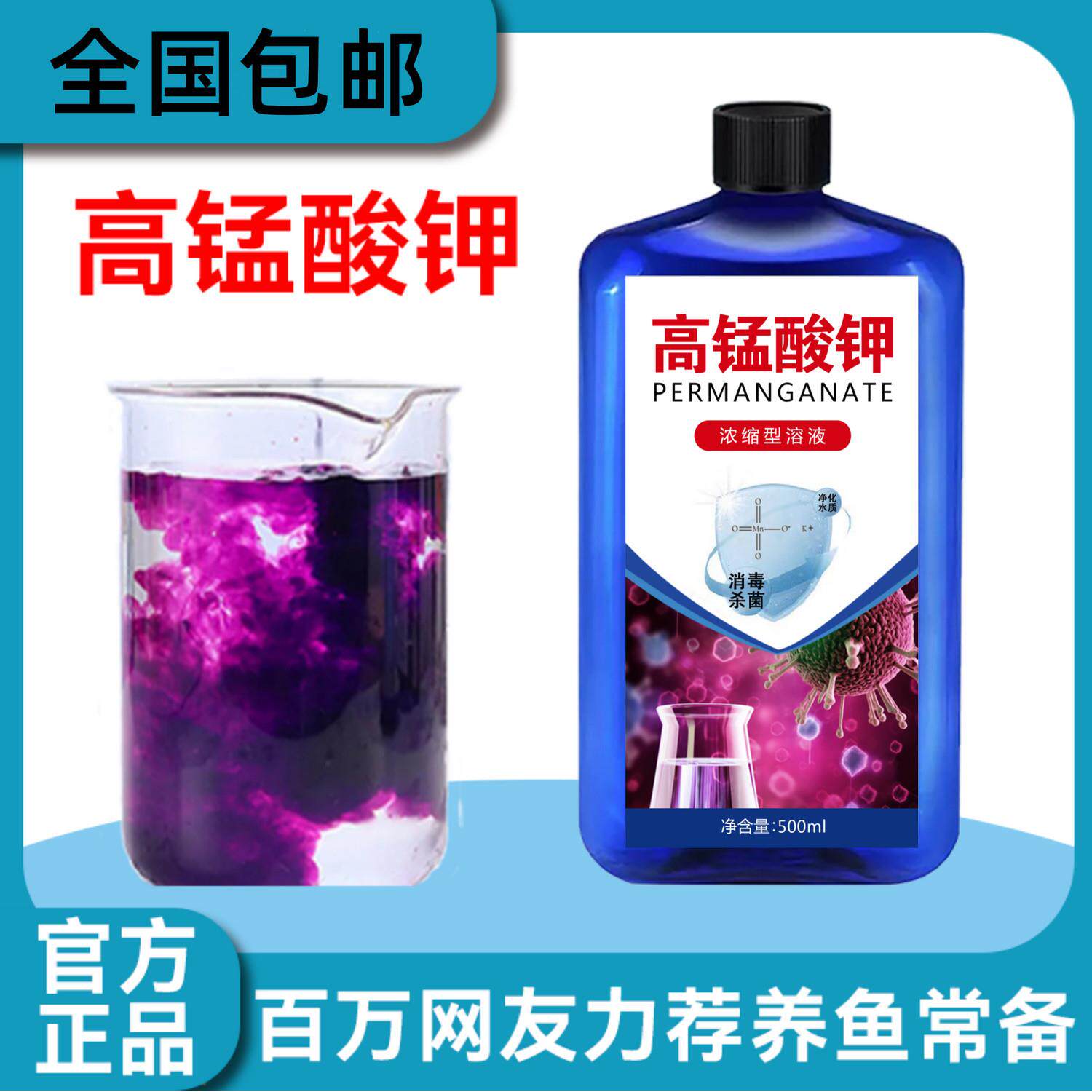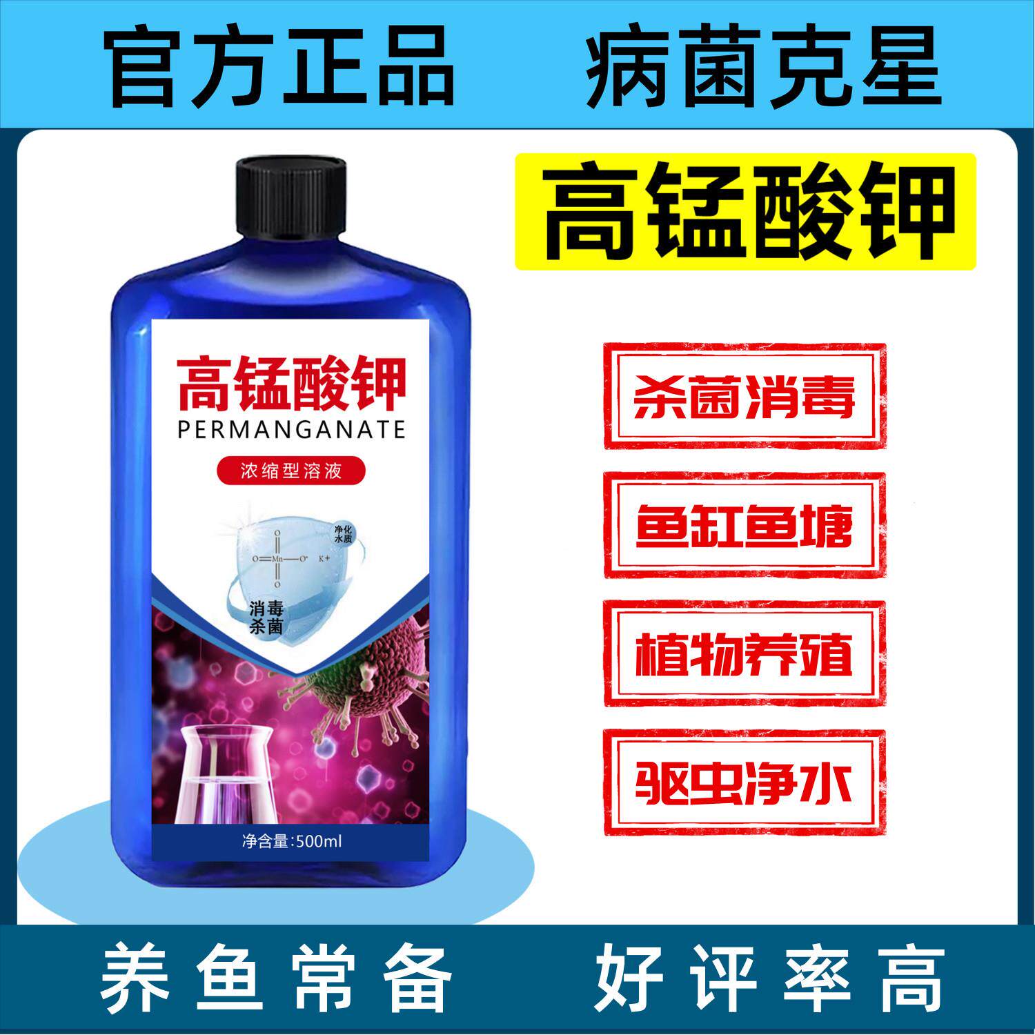 高锰酸钾鱼缸消毒杀菌专用溶液烂身烂尾水霉病观赏鱼消毒杀菌