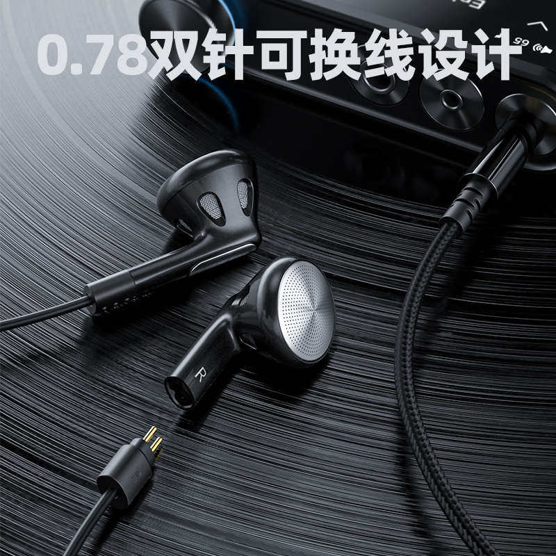 FiiO FF1镀铍振膜可换线平头耳机有线麦克风线控手机3.5耳塞 飞傲