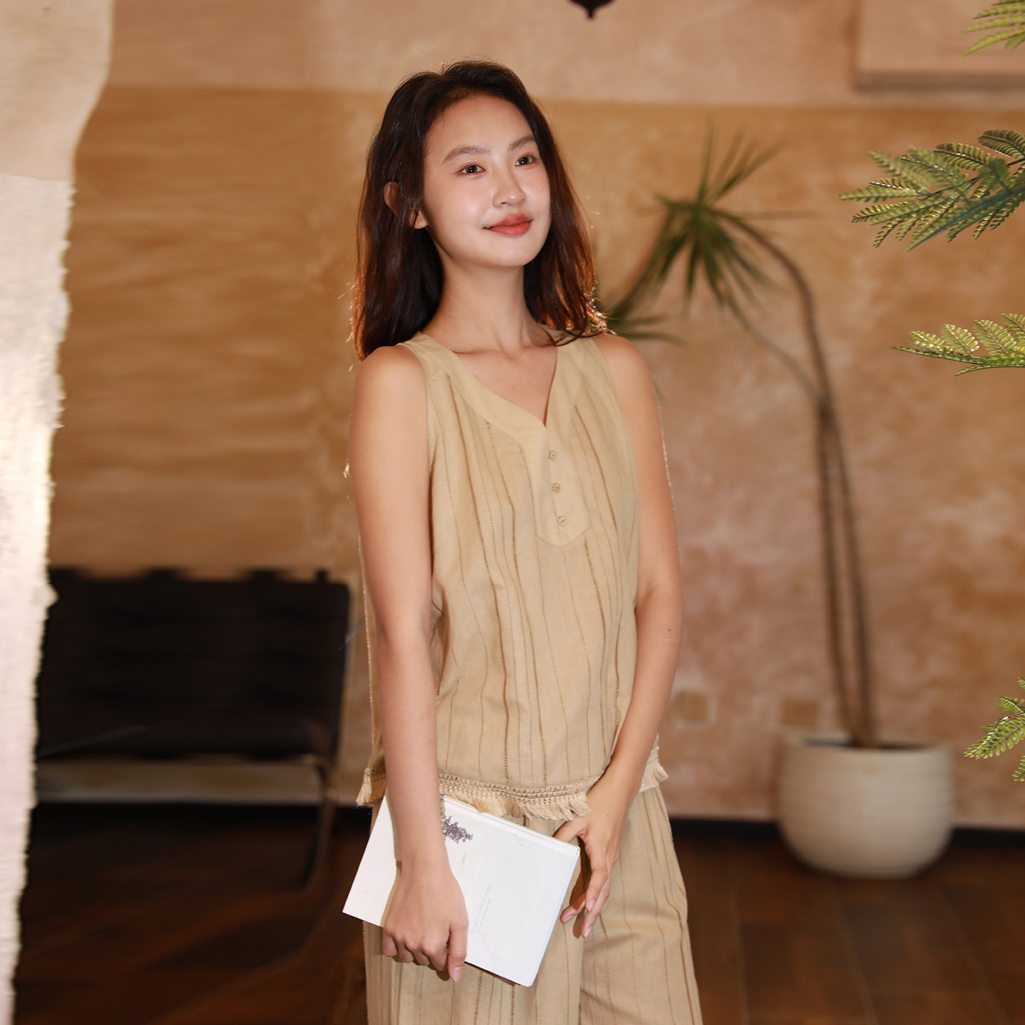 朵朵可可家居服睡衣女2026新款 棉麻条纹单上衣单裤 可配套装 夏季