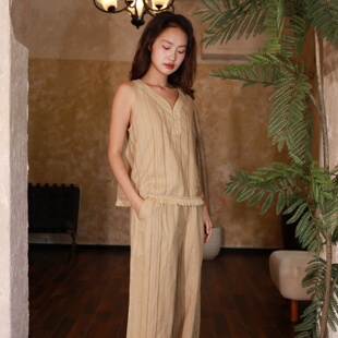 为您提供商品朵朵可可家居服睡衣女2026新款 棉麻条纹单上衣单裤 可配套装 夏季的详细介绍,