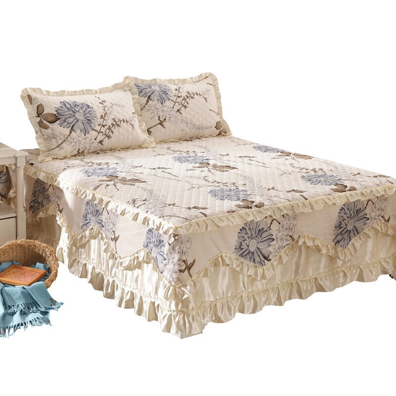 通用加厚防滑纯水洗棉三件套花边床笠罩 A类夹棉床裙单件床盖四季