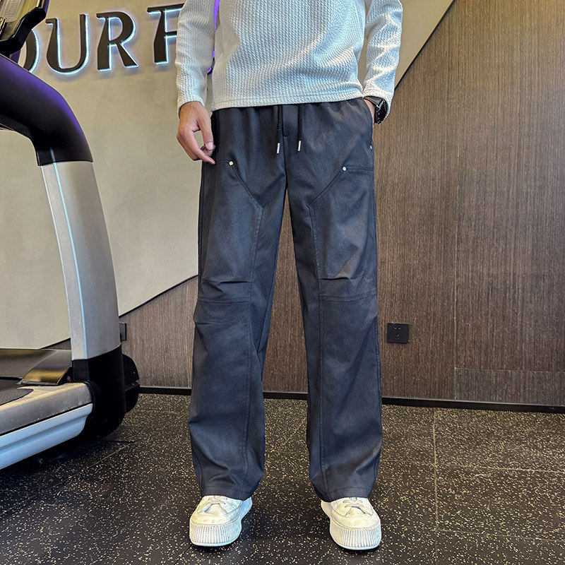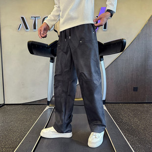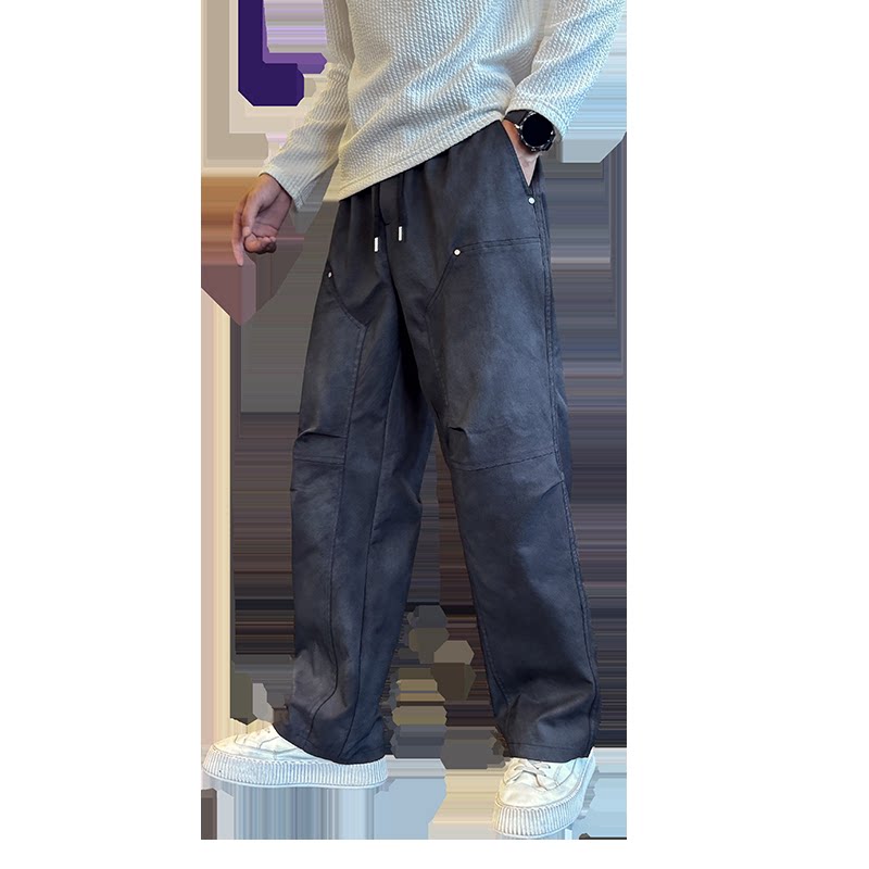 潮流男款 2026新款 阔腿拖地弯刀裤 拼接时尚 直筒宽松休闲男裤 个性