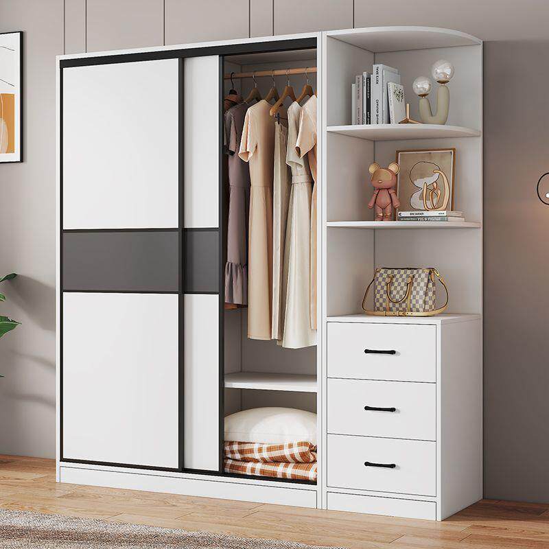 衣柜家用卧室出租房用儿推LEI门质木柜子小户童型简拉易大衣橱