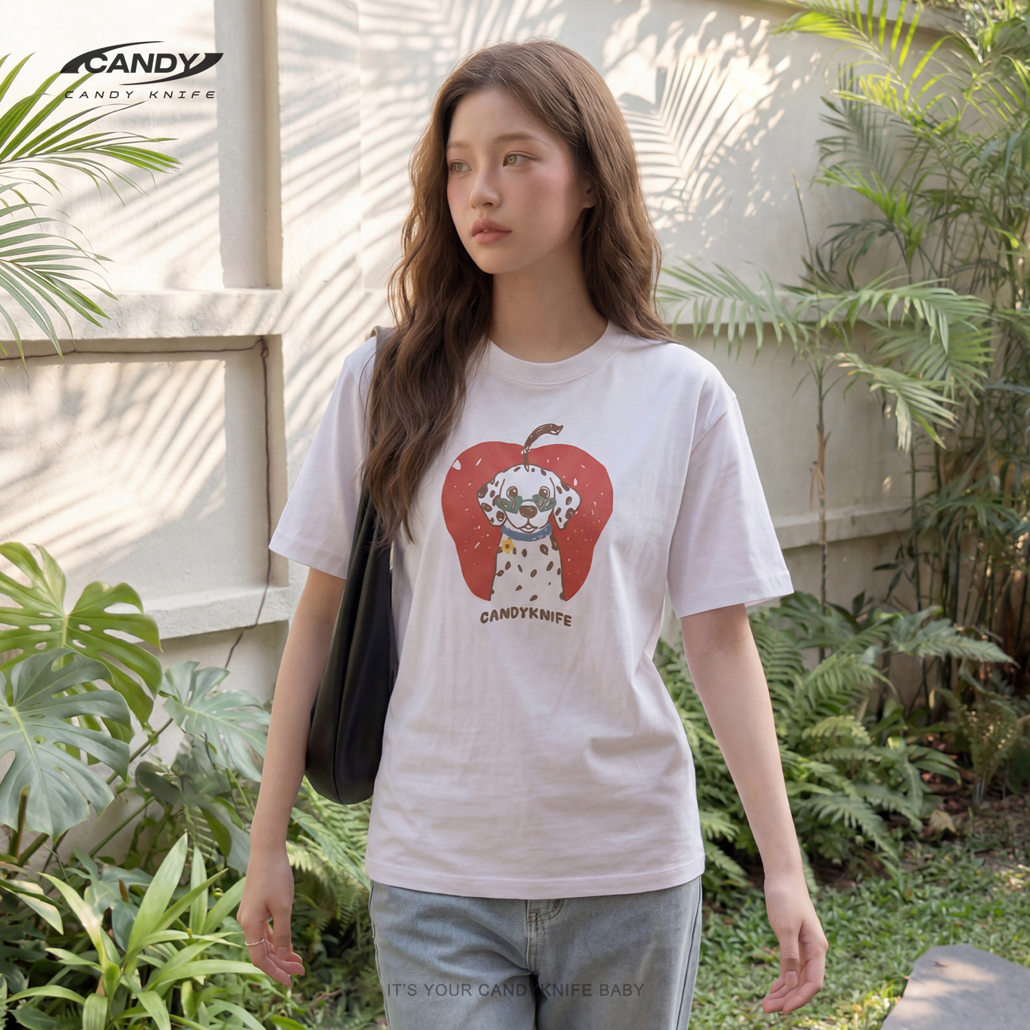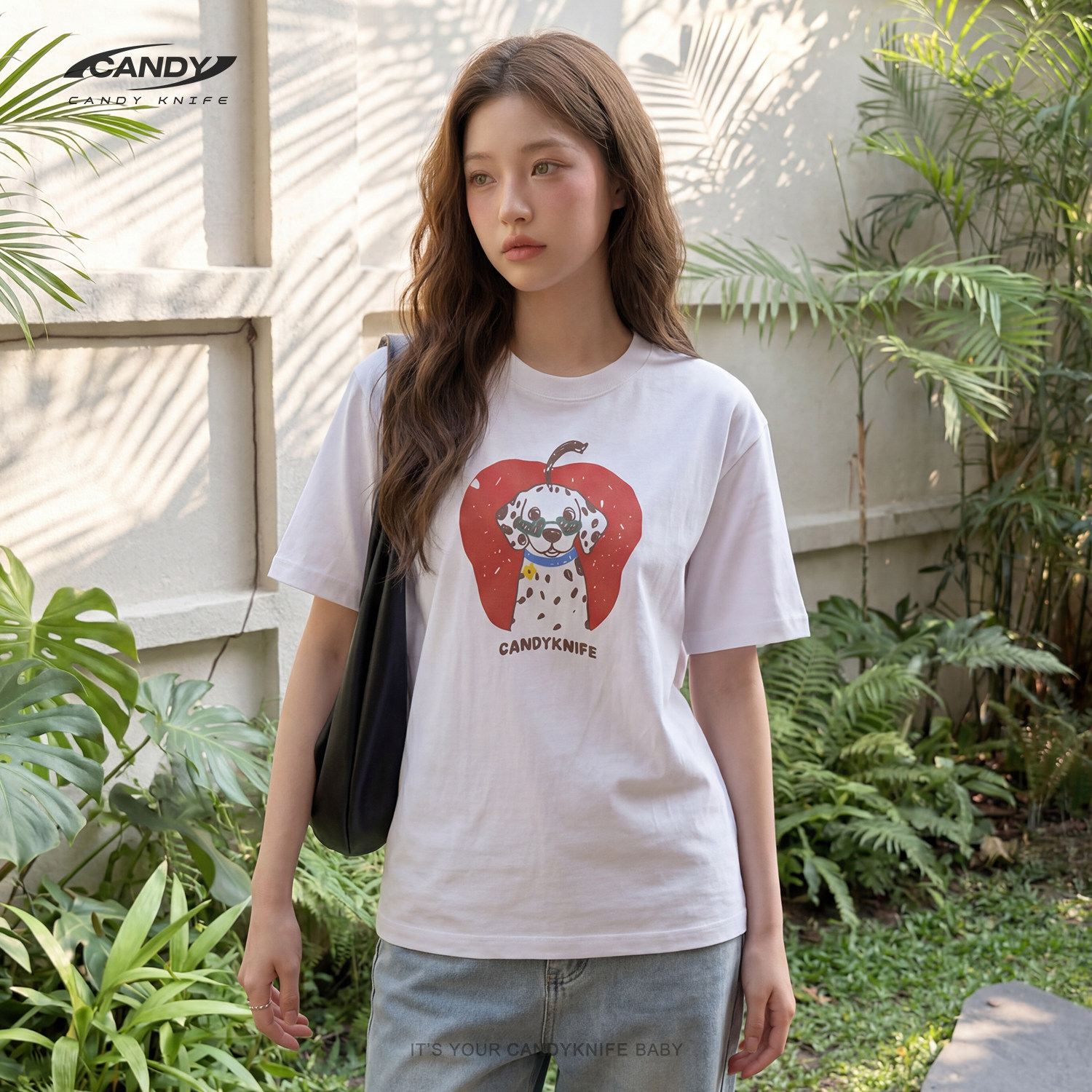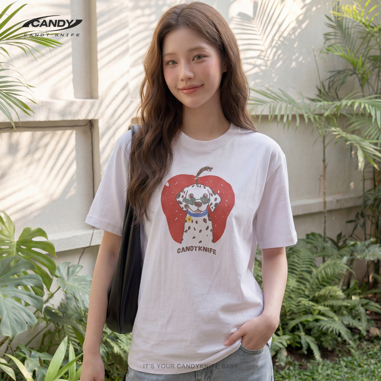 KNIFE苹果斑点狗纯棉T恤可爱甜妹风手绘童趣治愈风印花萌趣 CANDY由