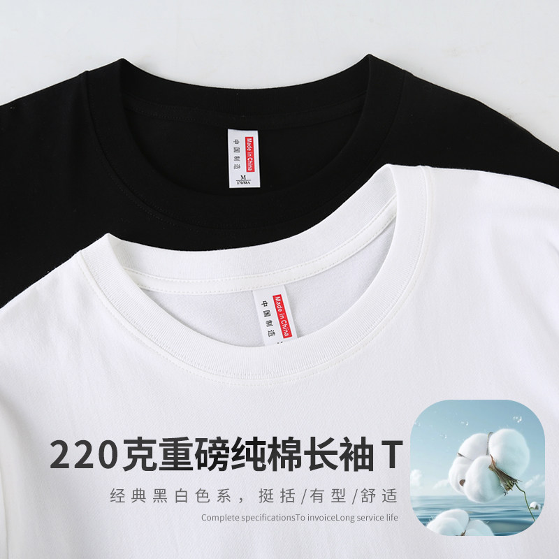 220G长袖 T恤高克重纯棉纯色打底衫 舒适内搭卫衣 春春Spring