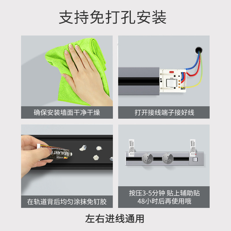 13A轨道插座可移动电力滑轨无线不带线排插明装 厨房家用拖线板 式由