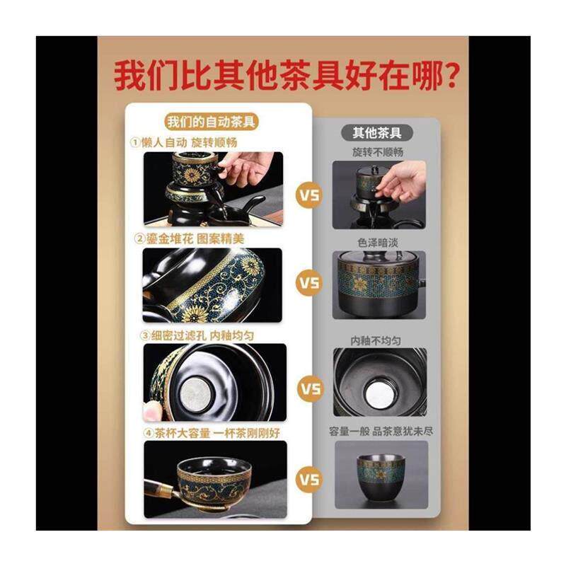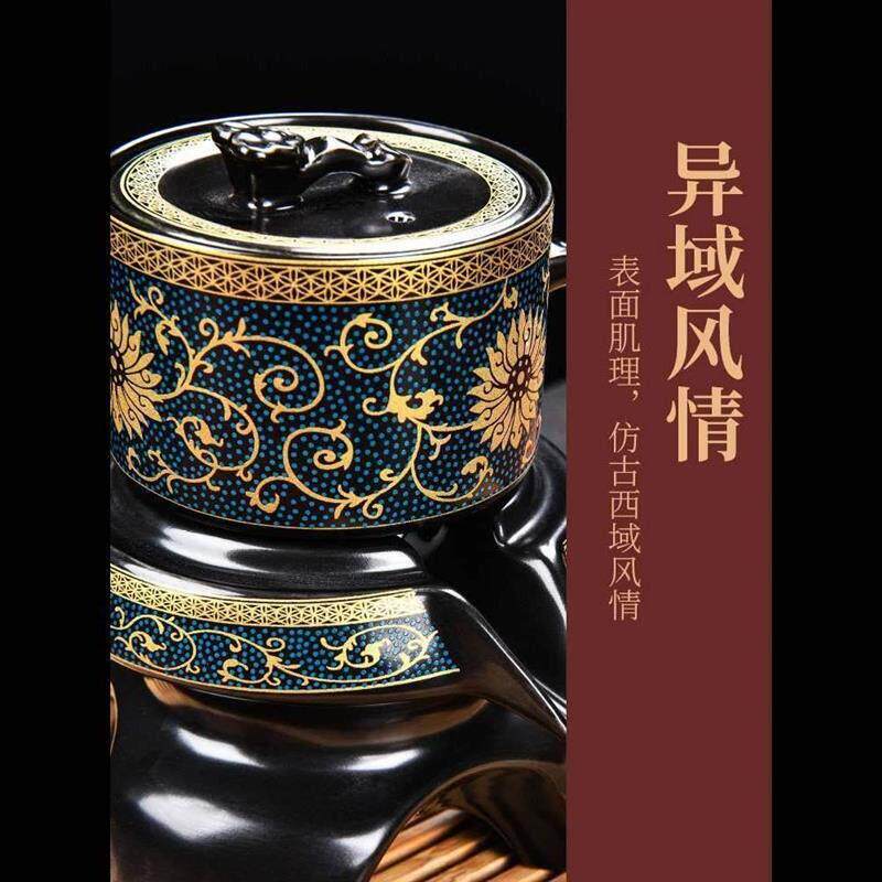 家用喝茶防烫泡茶壶陶瓷功夫茶杯石磨半自动冲茶神器 懒人茶具套装