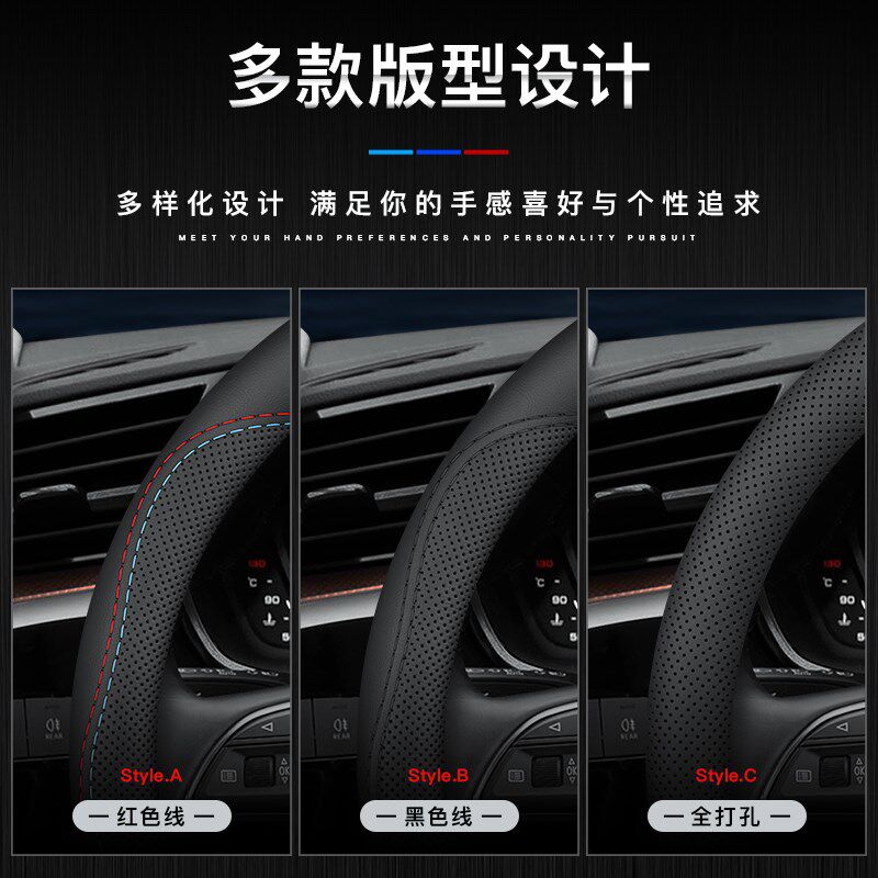 汽车方向盘把套套四季 通用防滑吸汗超薄方向盘D型透气真皮薄款
