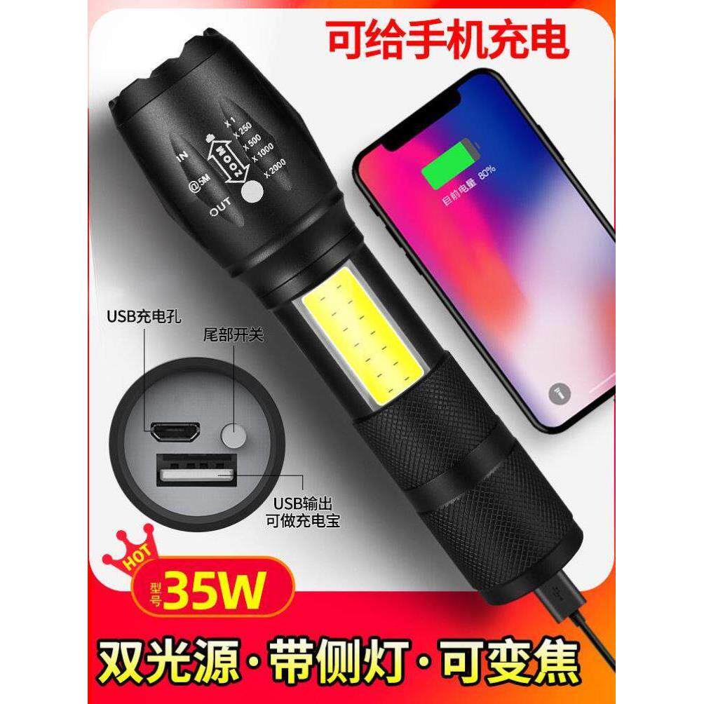 夜爬登山强光超亮手电筒户外防水大功率便携长续航变焦充电激光灯