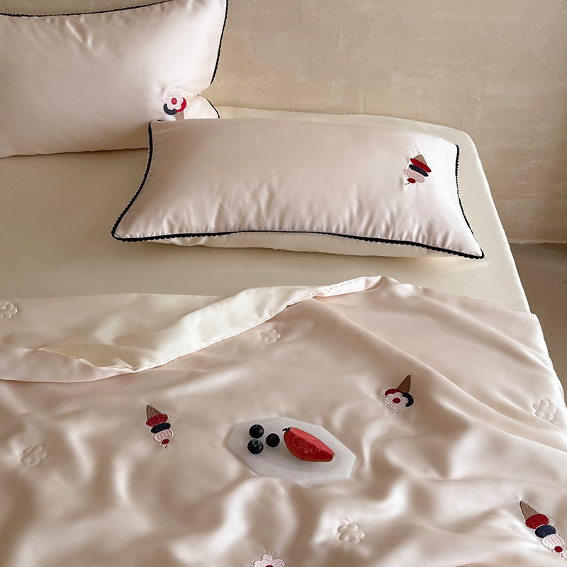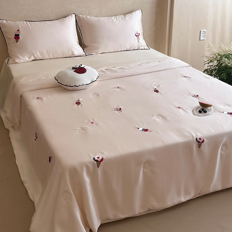 高端天丝夏被60S兰精面料精致刺绣凉感被家用空调被可水洗四套件