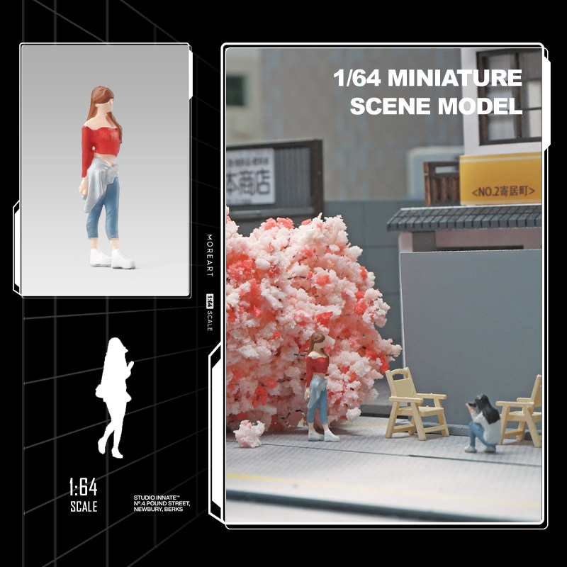 64红衣长发女生人偶模特微缩小人模型沙盘微拍场景道具手办摆件