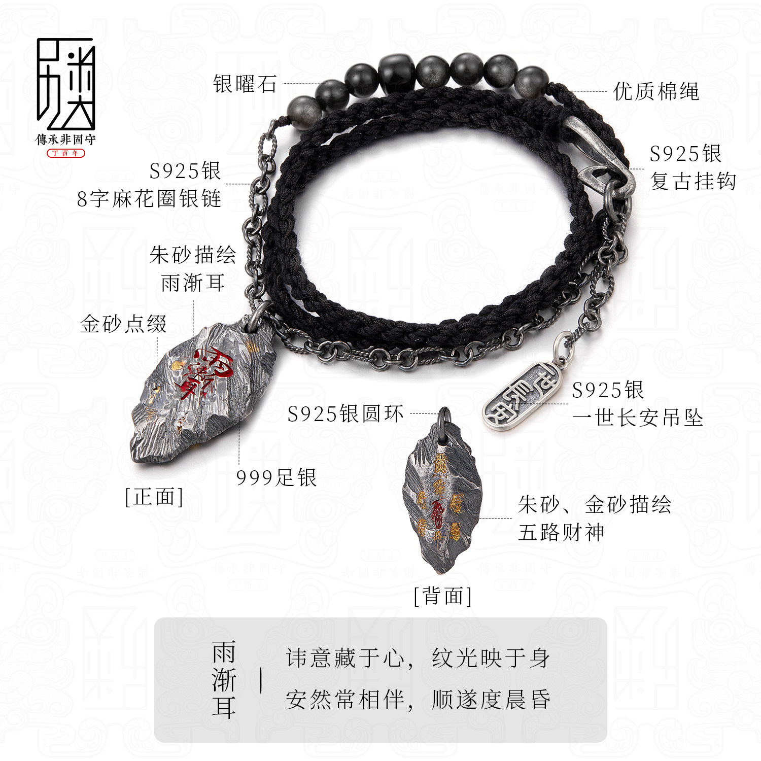为您提供商品雨渐耳 纯银饰品项链编绳朱砂五路财神送人礼物 999足银吊坠男士的详细介绍,