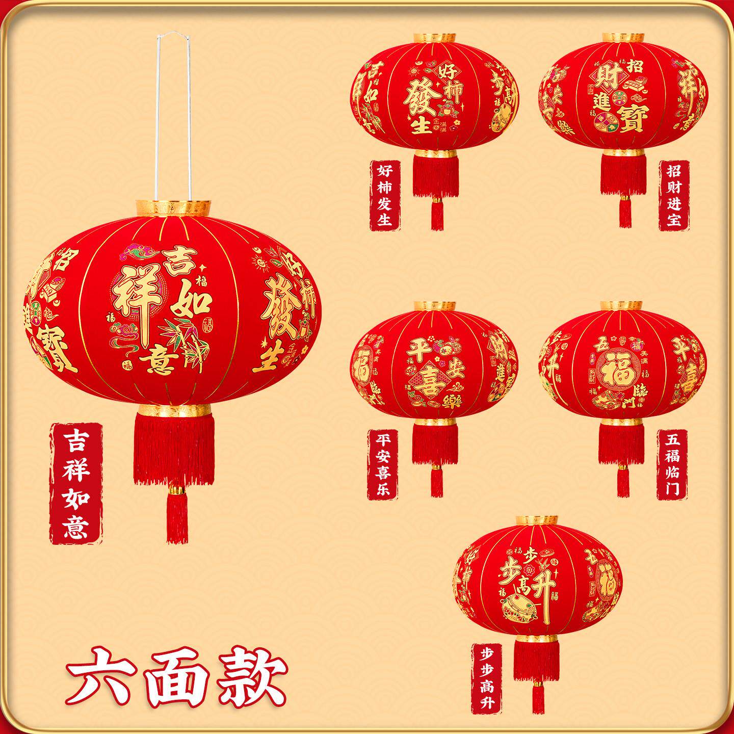 元 饰 旦新年春节植绒小灯笼挂饰树上小红灯笼盆景户外阳台结婚庆装