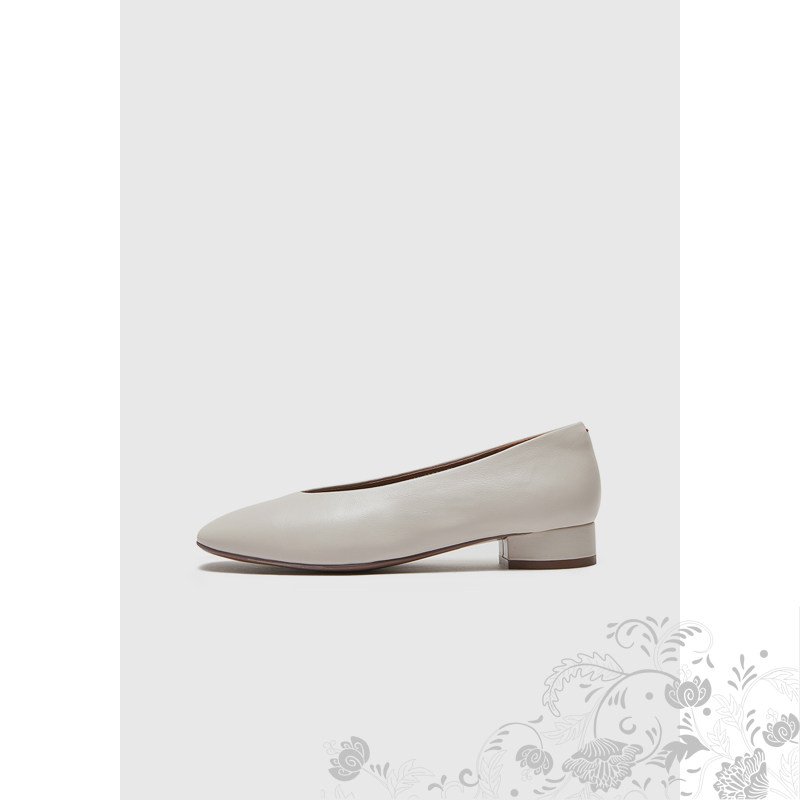 一脚蹬婚鞋 真皮 骄屿气质尖头粗跟玛丽珍法式 浅口单鞋 裸色高跟鞋