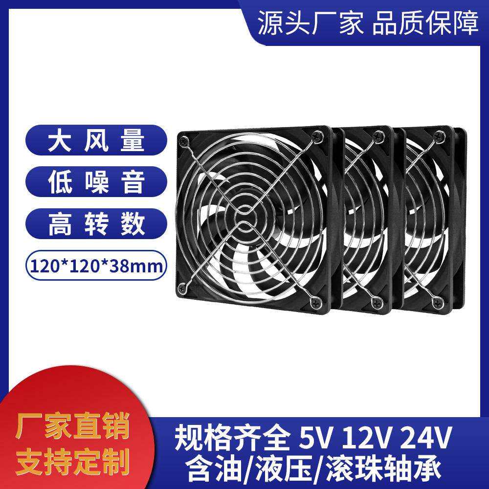 散热配电柜风扇 工厂12V直流风扇12cm滚珠12025散热扇3000转3个装由