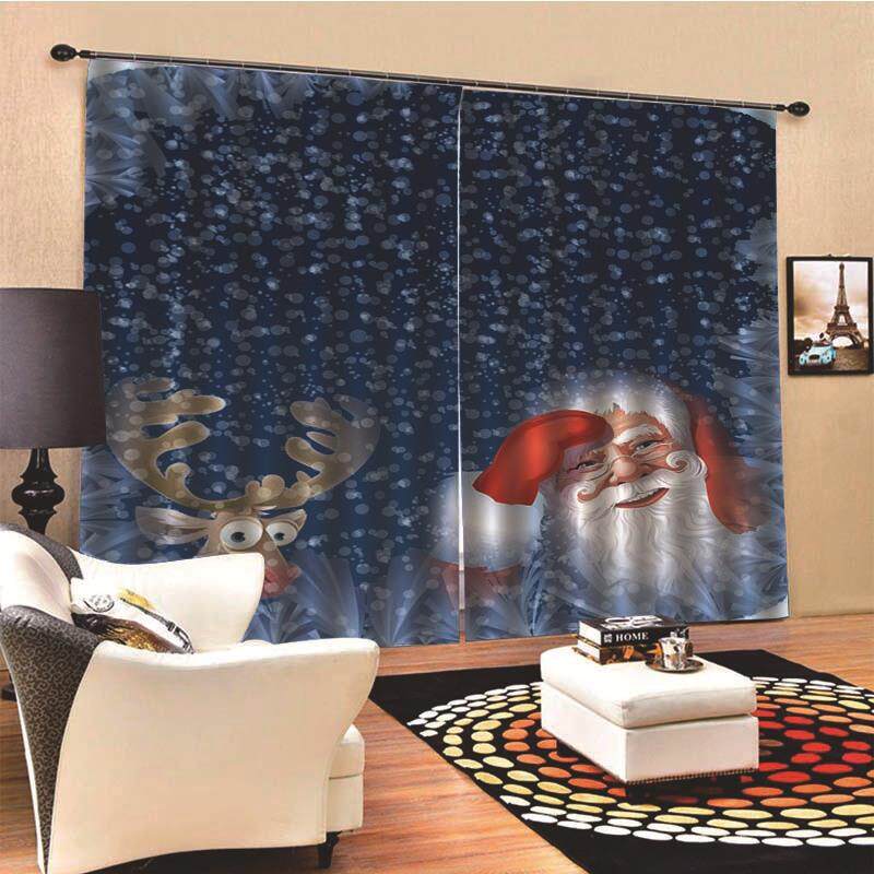 窗帘薄客厅卧室客厅背景布遮光christmas 亚马逊欧美圣诞款