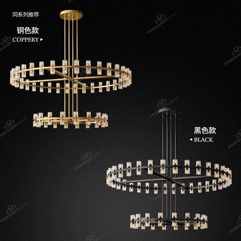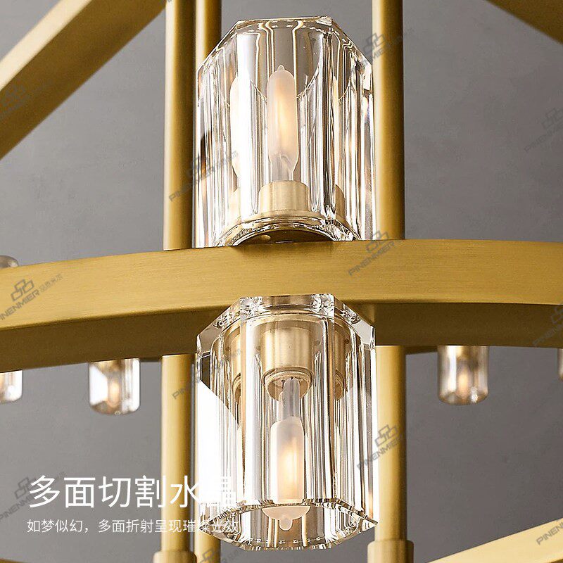品恩灯饰 楼大吊灯rh款 美式 全铜水晶双层别墅大堂宴会厅灯具 复式