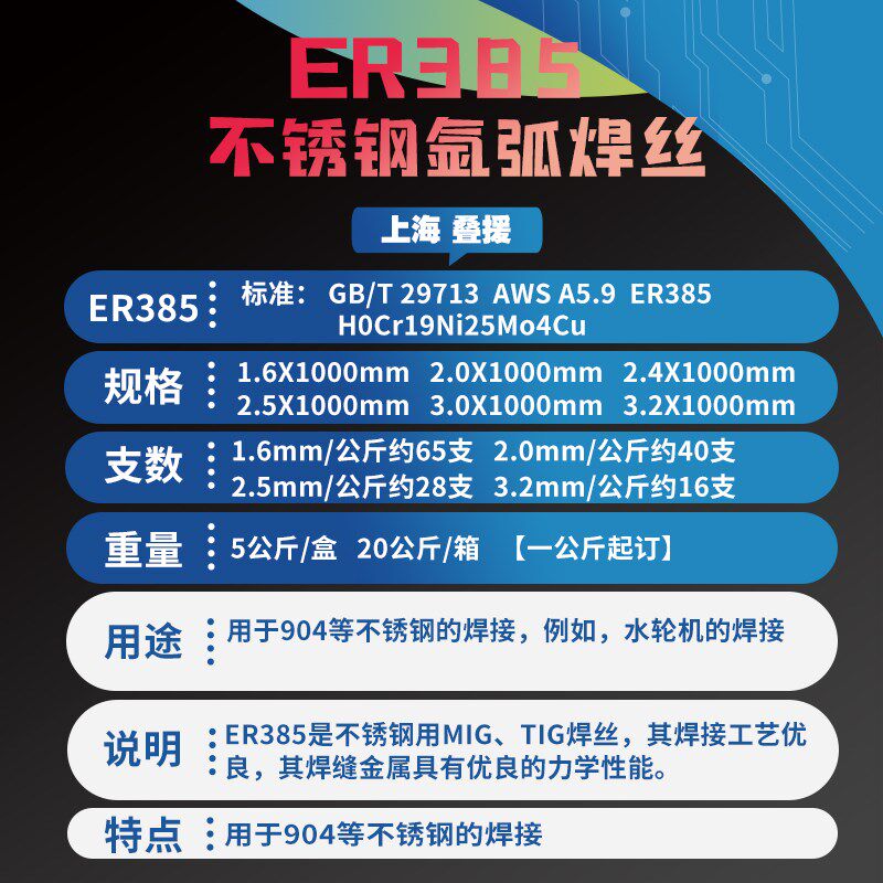 为您提供商品16焊丝H0Cr19Ni25Mo4Cu 上海ER385不锈钢氩弧焊丝904L直条E385的详细介绍,