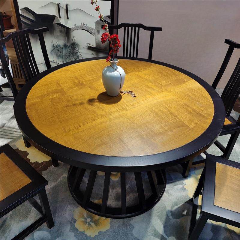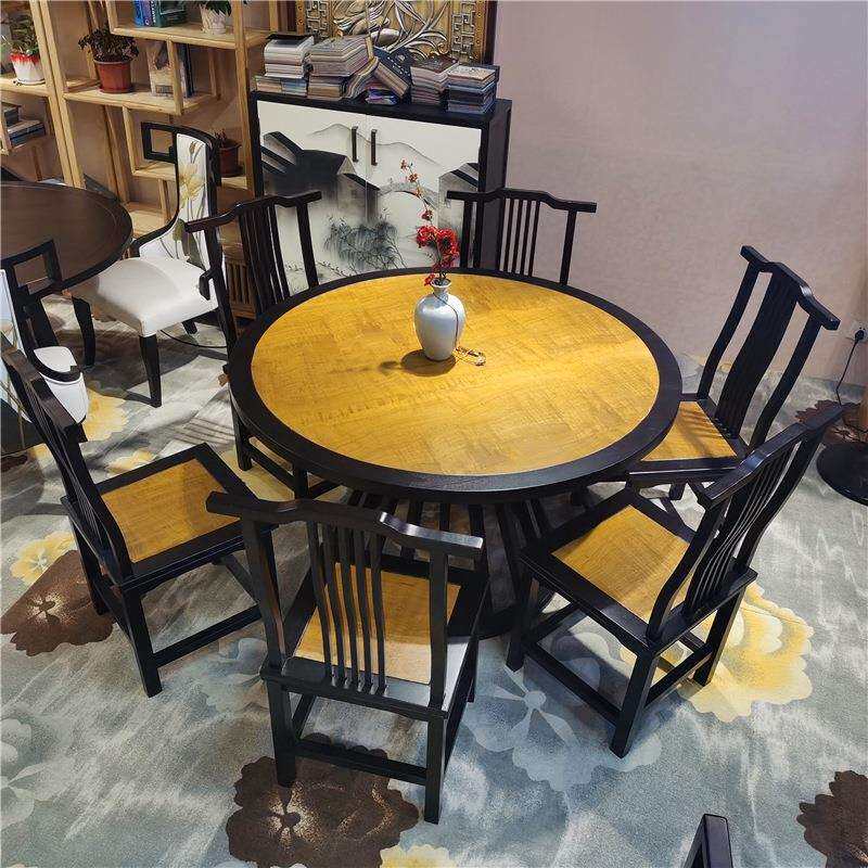 为您提供商品实木贴皮中式 饭桌圆形餐桌 白蜡木餐桌椅家用圆桌加餐椅套装 新中式的详细介绍,
