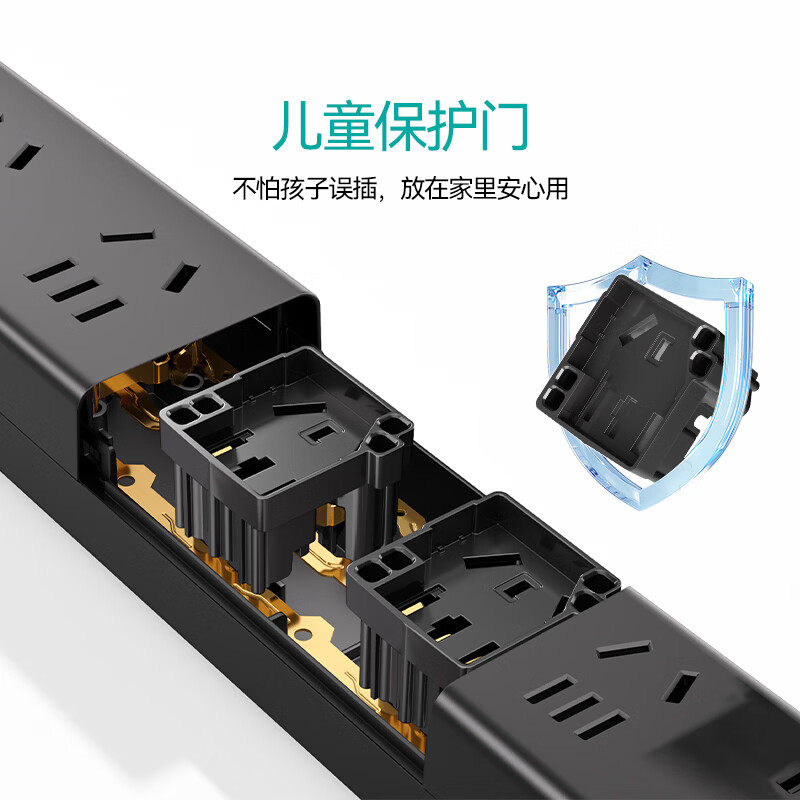 公牛插座插排家用多孔插线板儿童安全门3米5米排插过载保护接线板
