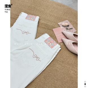 女百搭显瘦直筒白色九分裤 沐熙 60105大码 高腰牛仔阔腿裤 子 通勤裤