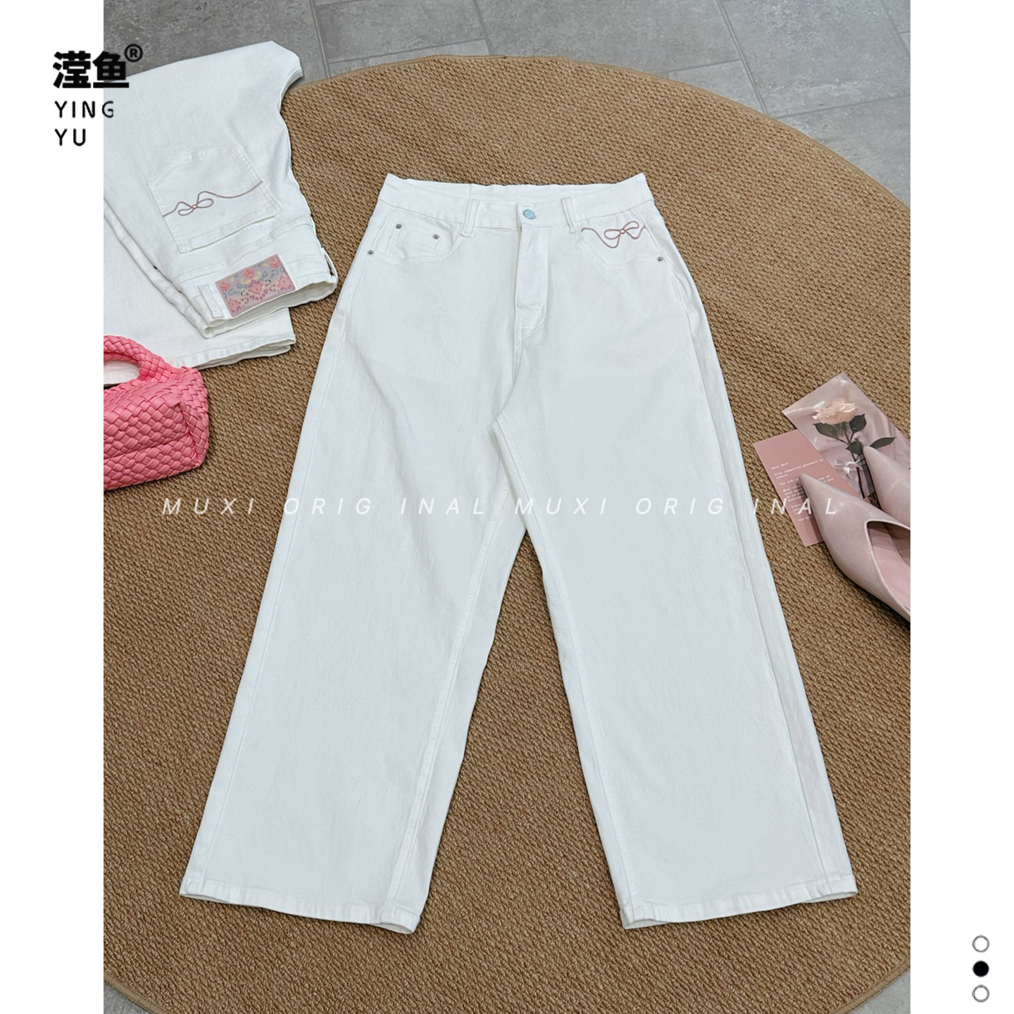 为您提供商品女百搭显瘦直筒白色九分裤 沐熙 60105大码 高腰牛仔阔腿裤 子 通勤裤的详细介绍,