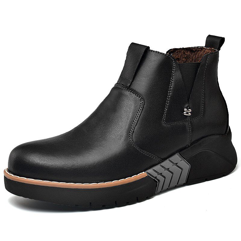 侧拉链马丁靴男高帮英伦风真皮黑色工装 增高中帮短靴子 机车靴春季