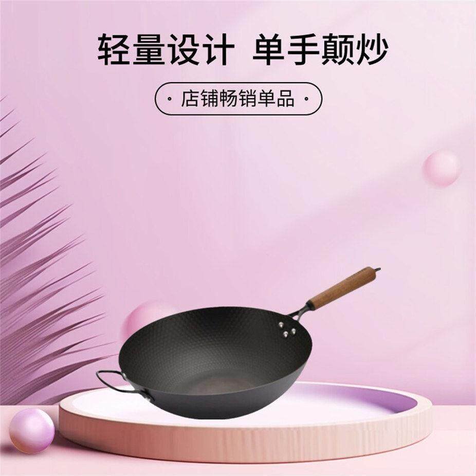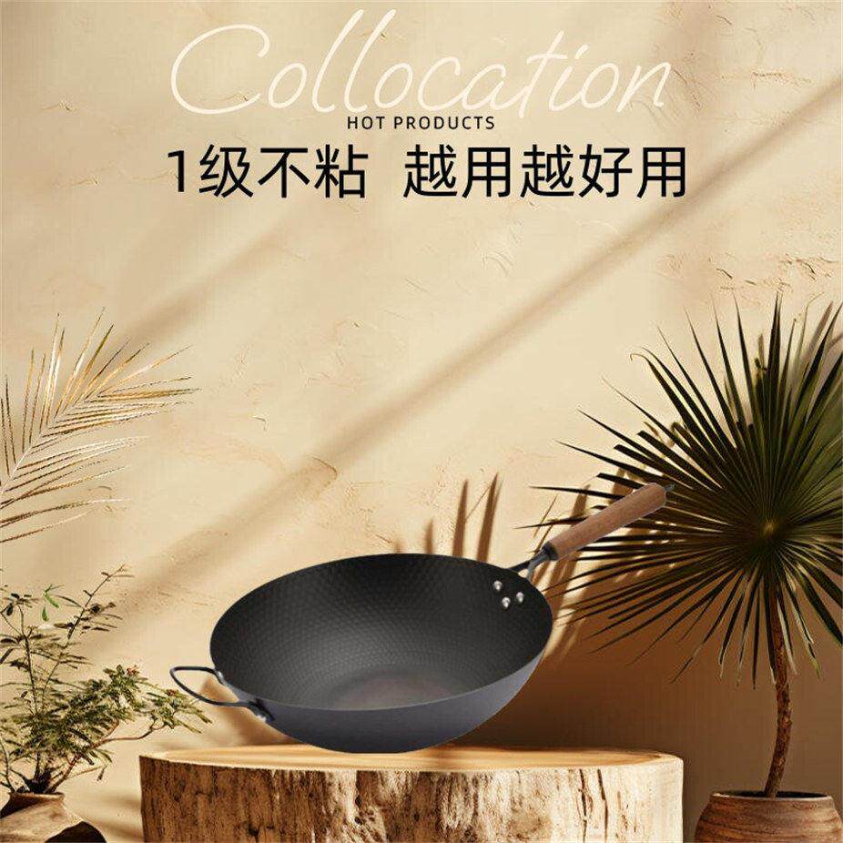 炒锅家用不粘锅无涂层燃气灶适用 章丘炒菜锅传统铁锅官方旗舰老式